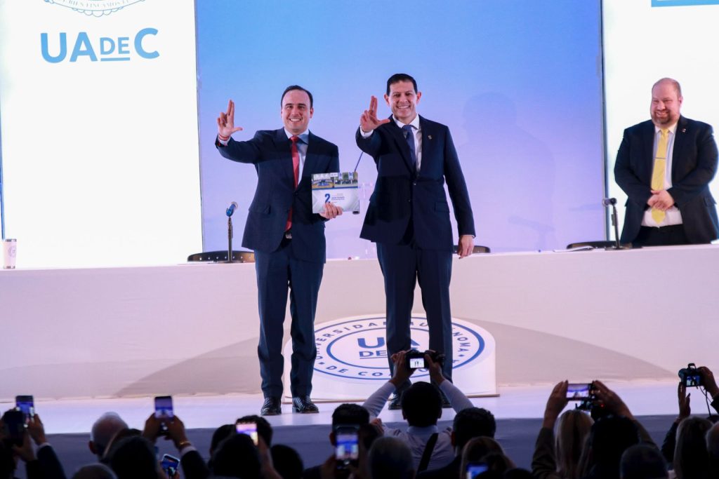 “Son sin duda una de las mejores universidades de todo México y es gracias a esa unidad, a ese equilibrio y a esa colaboración, para nosotros la educación es sin duda una de las herramientas más poderosas, por eso estamos invirtiendo miles de millones de pesos en materia educativa a través del gran proyecto Impulso Educativo y proyectos importantes para quienes son el presente y el futuro de Coahuila y de México, ustedes los jóvenes ¡Cuenten con nosotros al cien, prácticamente como si fuéramos un Lobo más, para seguir trabajando por esta gran Universidad!”.